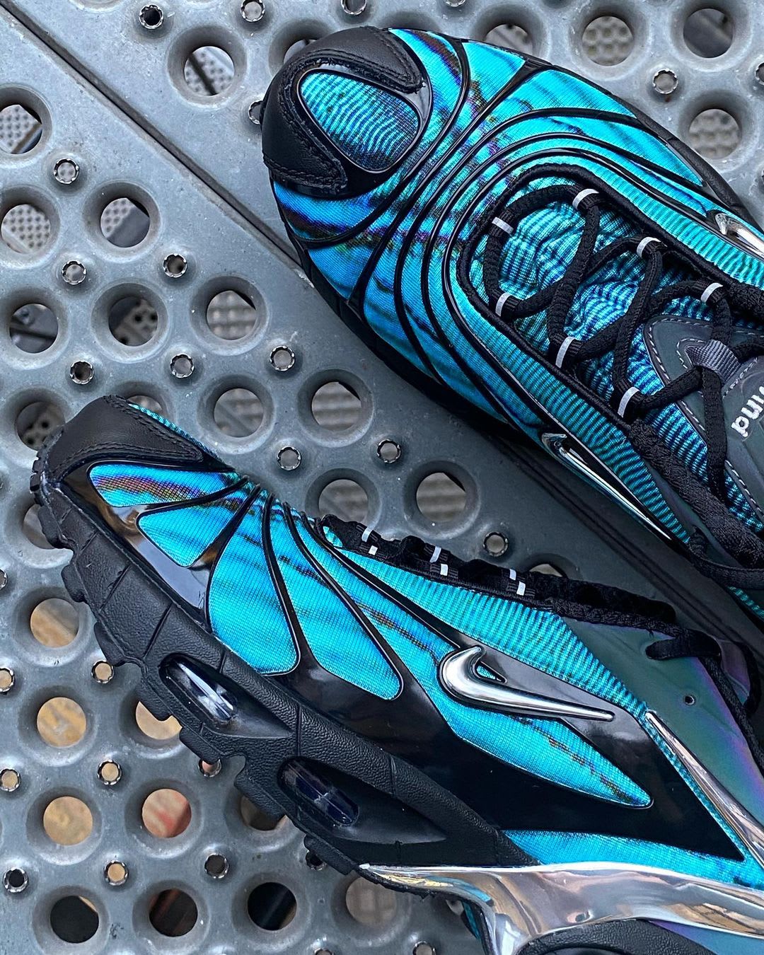 UPDATE (03/23): In addition to the red colorway that appeared on eBay in January, a second Skepta x Nike Air Max Tailwind V has leaked thanks to @samutaro. Like the red pair, this version uses a bright blue upper with a static-like pattern. A release date has not been confirmed, but readers can expect updates soon.