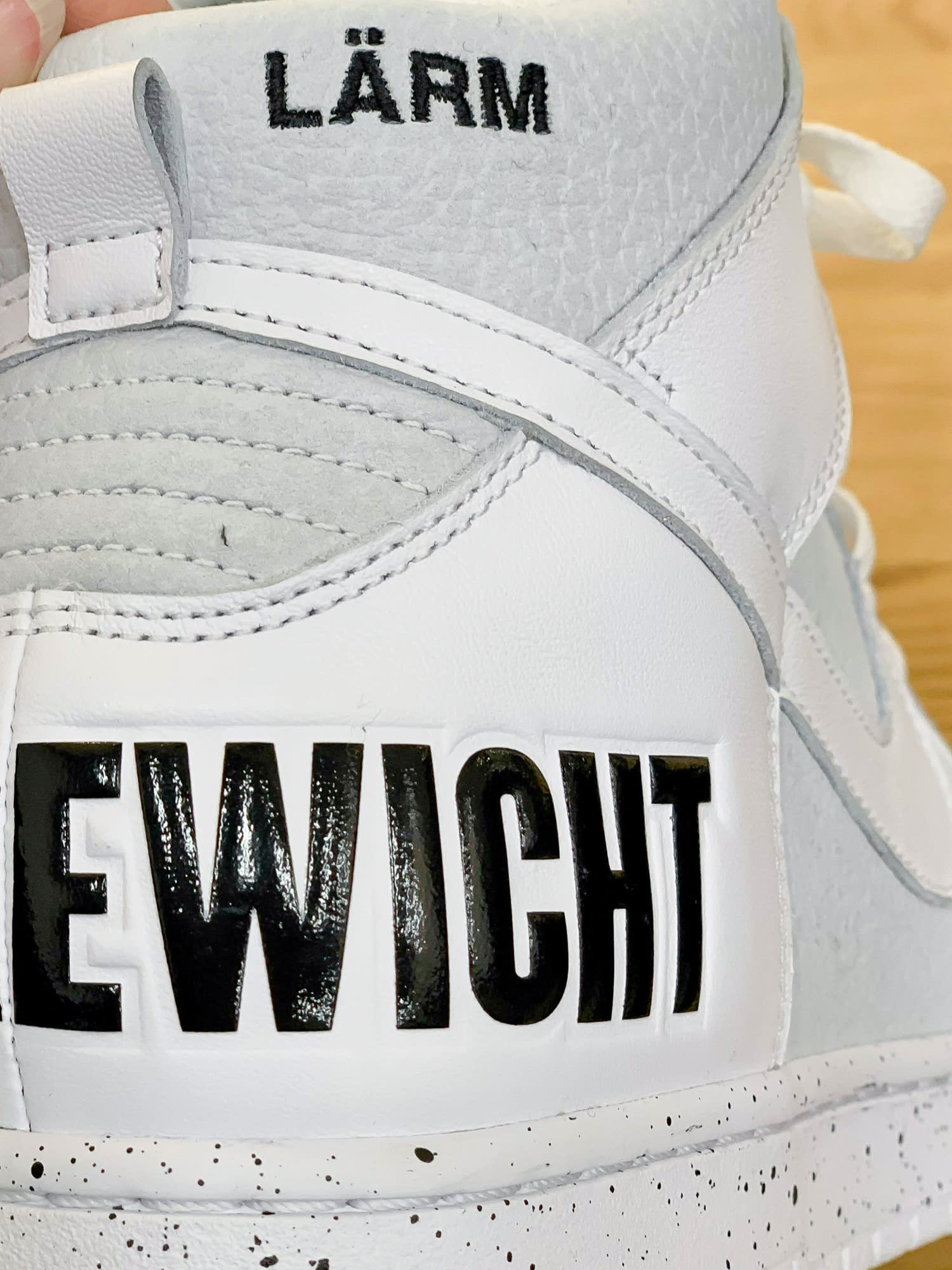 This week, Japanese fashion designer Jun Takahashi showcased his latest Undercover Fall/Winter 2021-22 collection at Paris Fashion Week, which included previews of an unreleased Nike Dunk High collab. It looks like the project will include two monochromatic black and white styles featuring debossed text on the heel counter with “CHAOS” stamped on the right pair and “GLEICHGEWICHT,” which translates to balance, applied on the left shoe. Capping off the look are speckled midsoles.