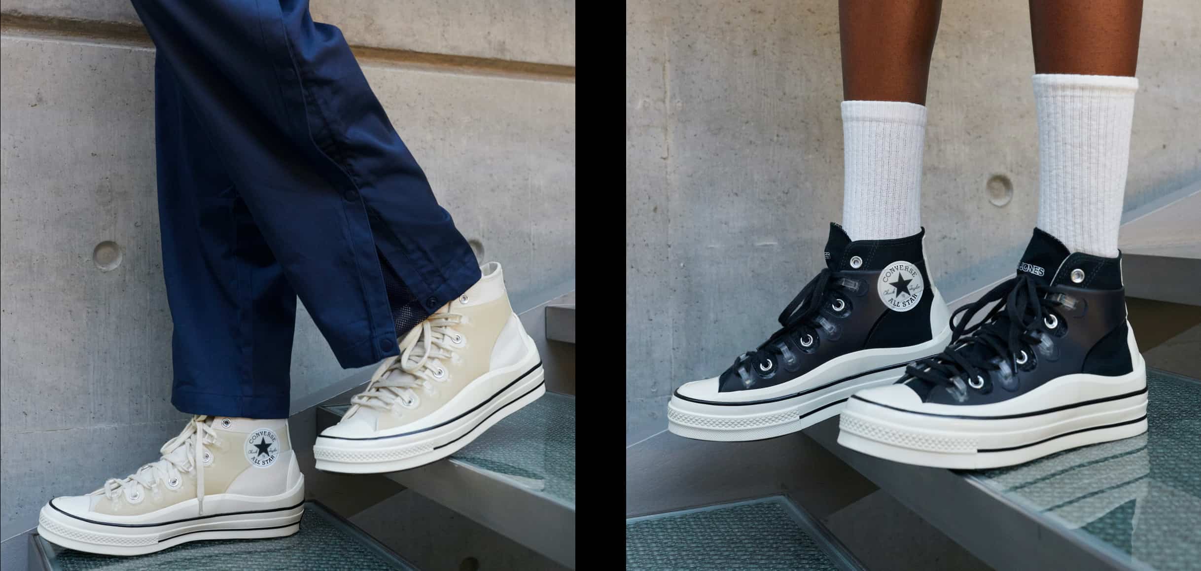 According to the brand, Jones references streetwear in the U.K. combined with ‘90s style and outdoor utility for this two-shoe Chuck 70 capsule. The first pair sports a tonal ivory color scheme while the second shoe combines a black upper with a sail tooling. Jones elevates the look of the Chuck 70 by applying a TPU cage to the uppers that also function as a speed-lace system as well. Adding to the look is co-branded insoles along with Jones’ name stamped on the tongue.
