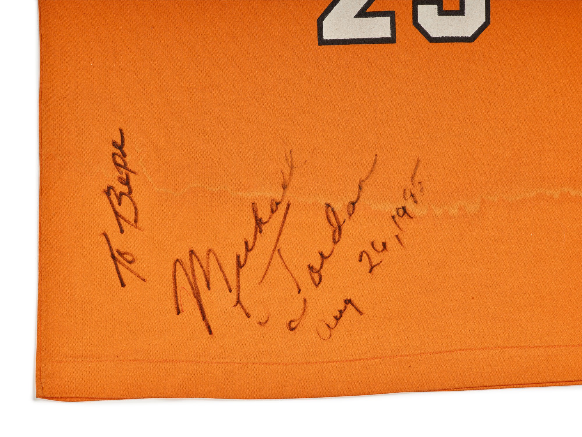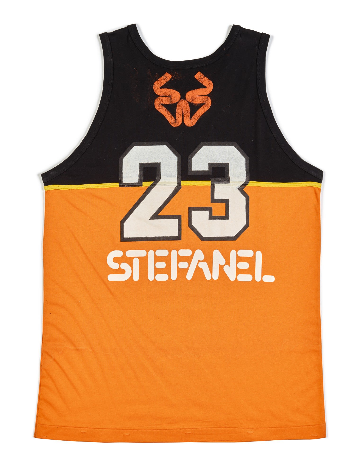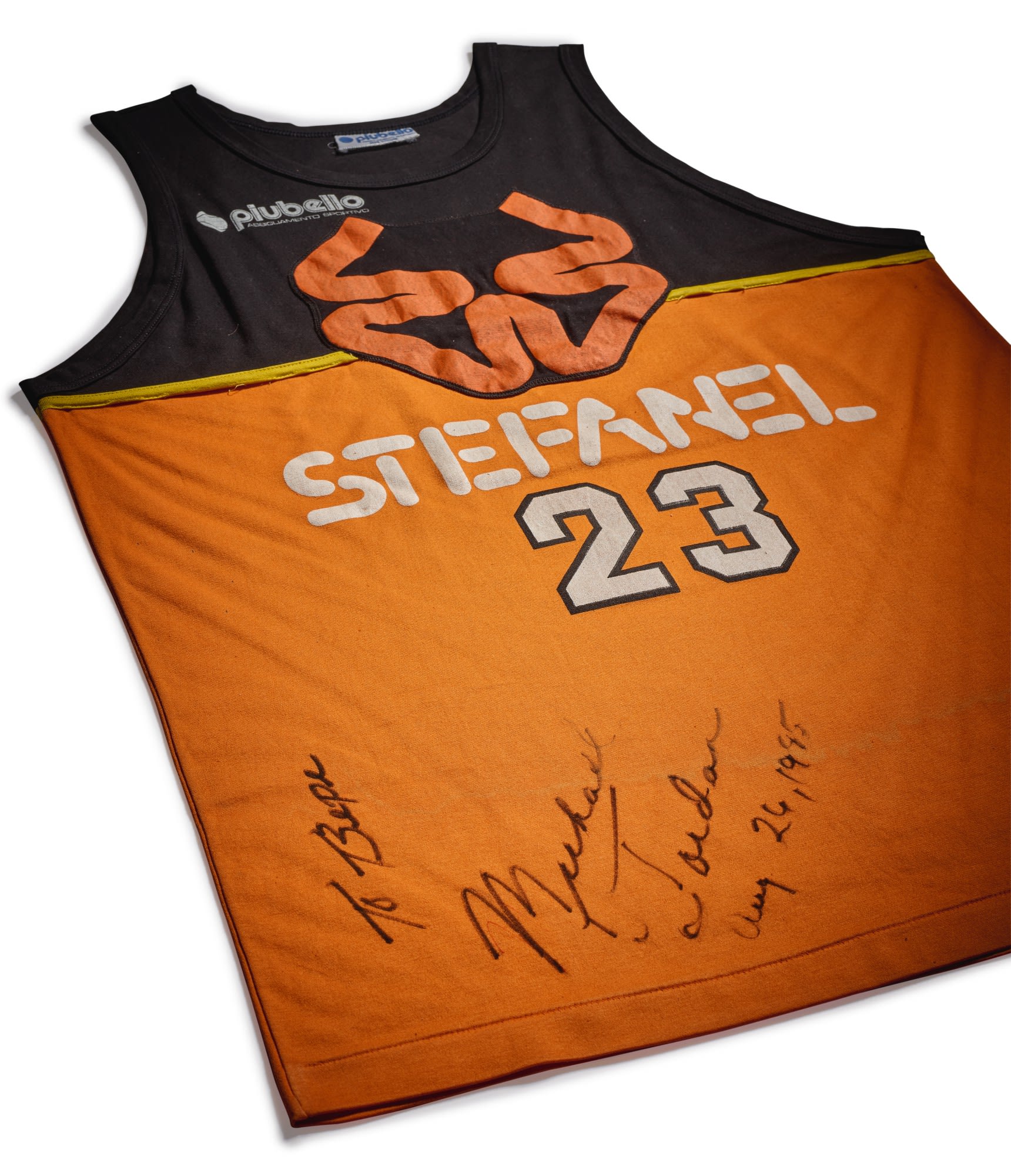 Dubbed Michael Jordan – Shattered, Sotheby's latest lot is led by the historic Stefanel Trieste jersey that MJ wore when he brought down the backboard during a Nike exhibition game played in Trieste, Italy in 1985. The jersey sports an orange and black color combination with the Stefanel branding and the number 23 at the center, while MJ's signature appears at the bottom.