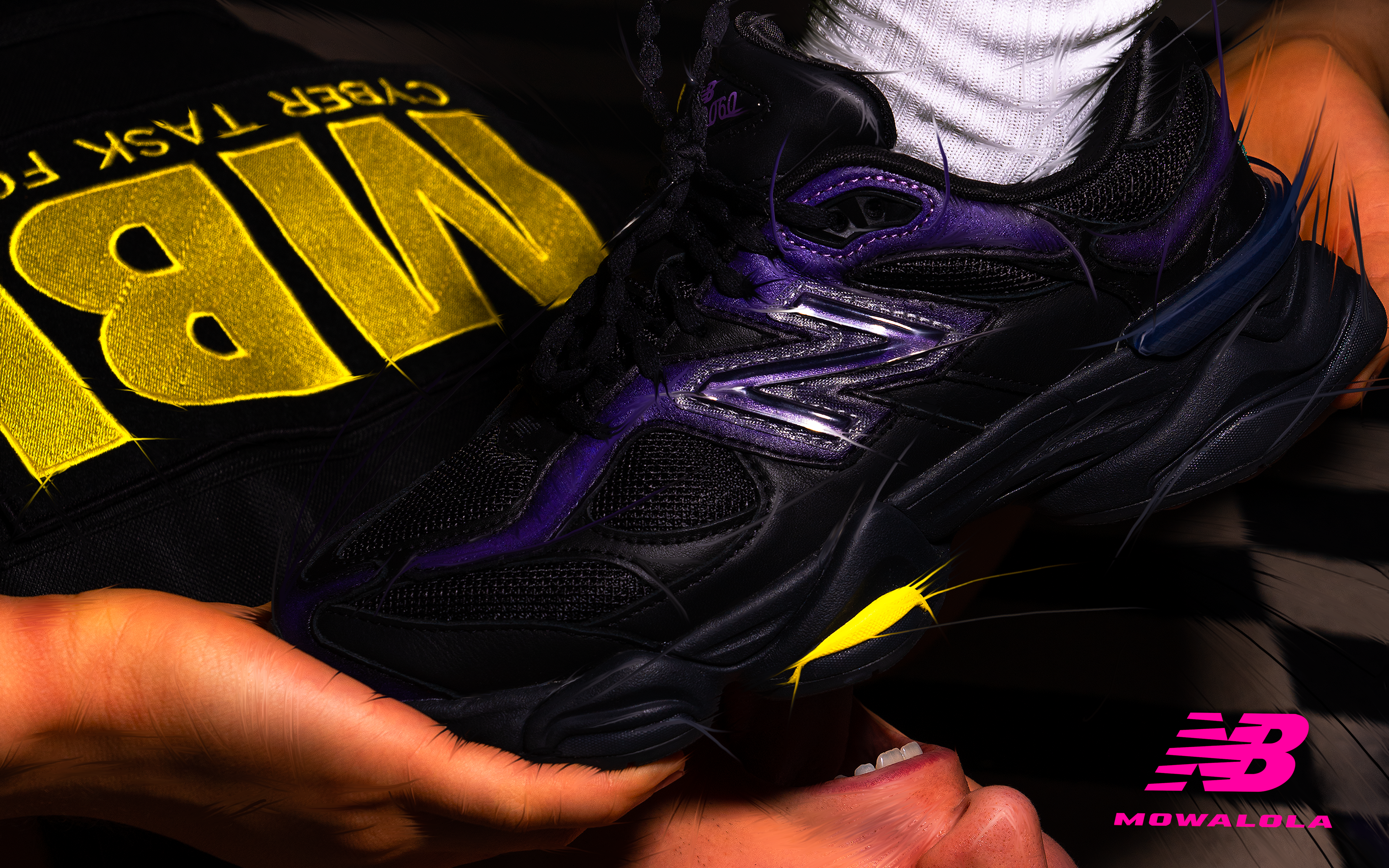 Shown here are the two “Burglarwear” Mowalola x New Balance 9060 collection that are available starting today, which were previewed at Mowalola’s Spring/Summer 2023 runway show at Paris Fashion Week earlier this year. Both pairs are inspired by the concept of thievery and don a predominantly black-based makeup. The looks are broken up by either teal and pink or purple and yellow accents, with the latter pair only available through Mowalola’s channels.
