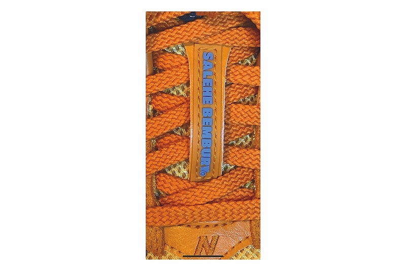 Salehe Bembury has taken to Instagram to offer a teaser of his upcoming New Balance collaboration. The Versace footwear designer's new post shows an upclose aerial of the sneaker's tongue and laces.