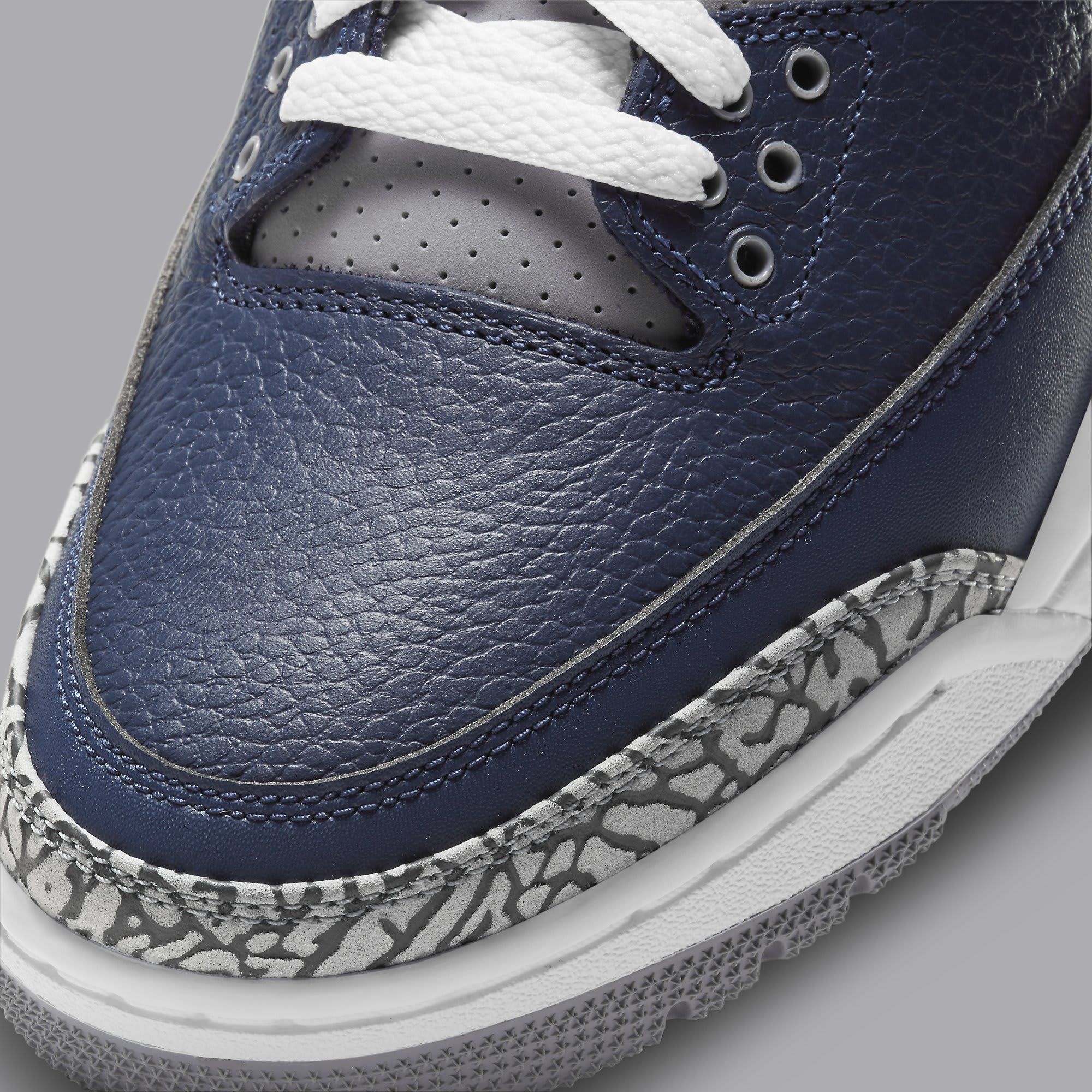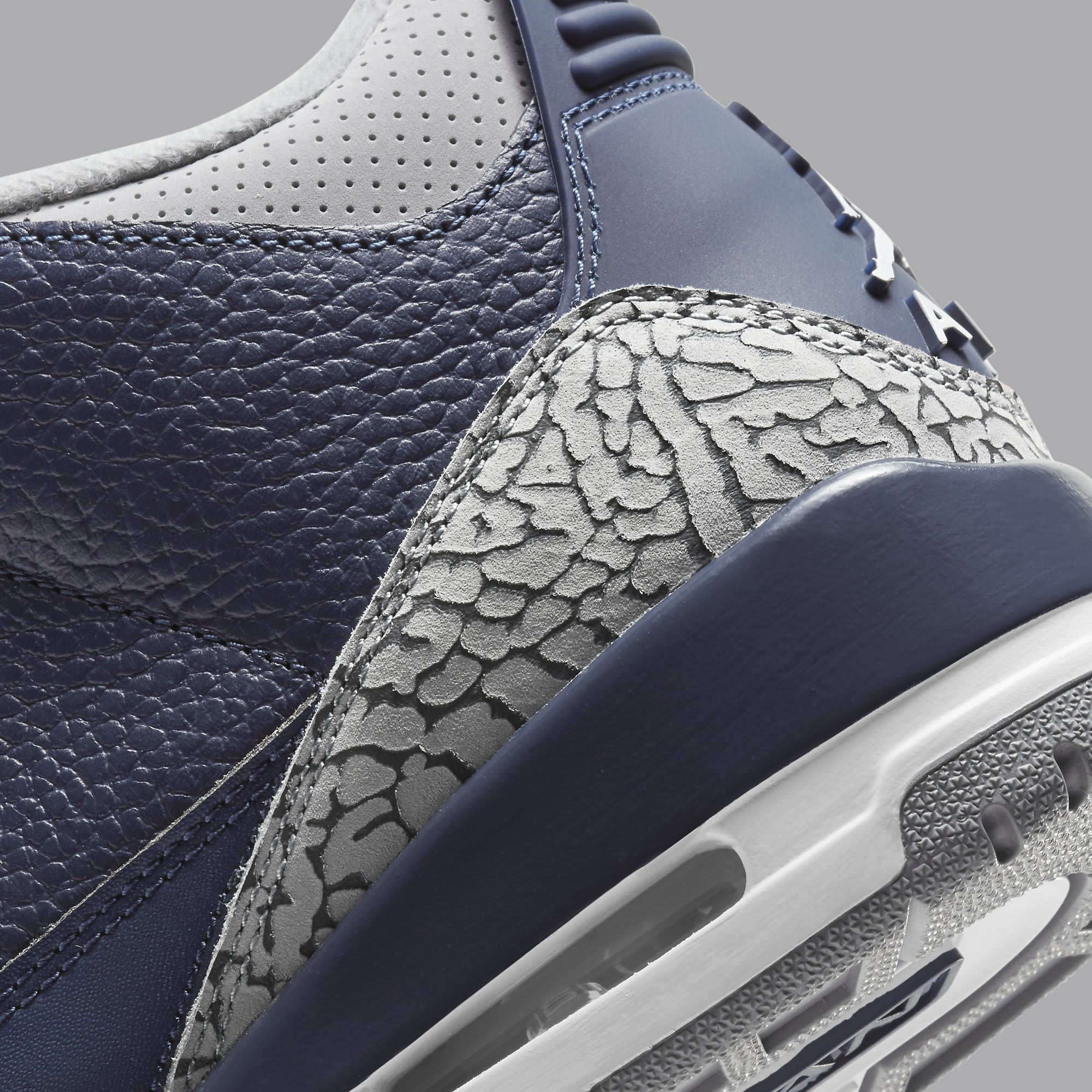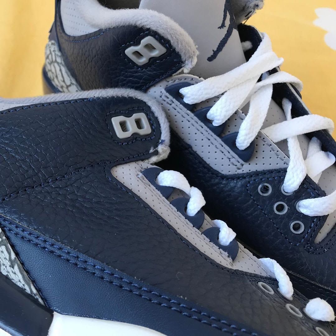 According to Soleheatonfeet, fans can expect a new "Midnight Navy/Cement Grey-White" makeup of the Jordan 3 to release in March 2021. While early images have yet to leak, zSneakerheadz has provided a mock-up photo of the shoe, which features a different color blocking from the official "Georgetown" Air Jordan 3 PEs from 2018. The upper predominately features a navy hue, while contrasting grey accents are found on the tongue and ankle collar.