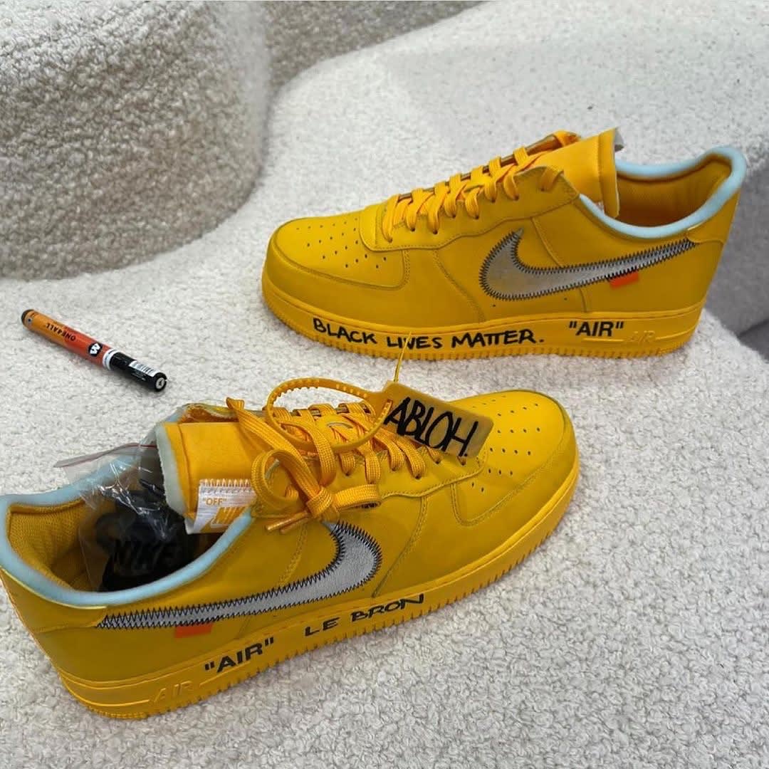 The pair in question was an unreleased yellow colorway of the Off-White x Nike Air Force 1 Low personally gifted to James by Virgil Abloh. As he often does, the designer made them personal to James by writing messages in black marker along the midsole.